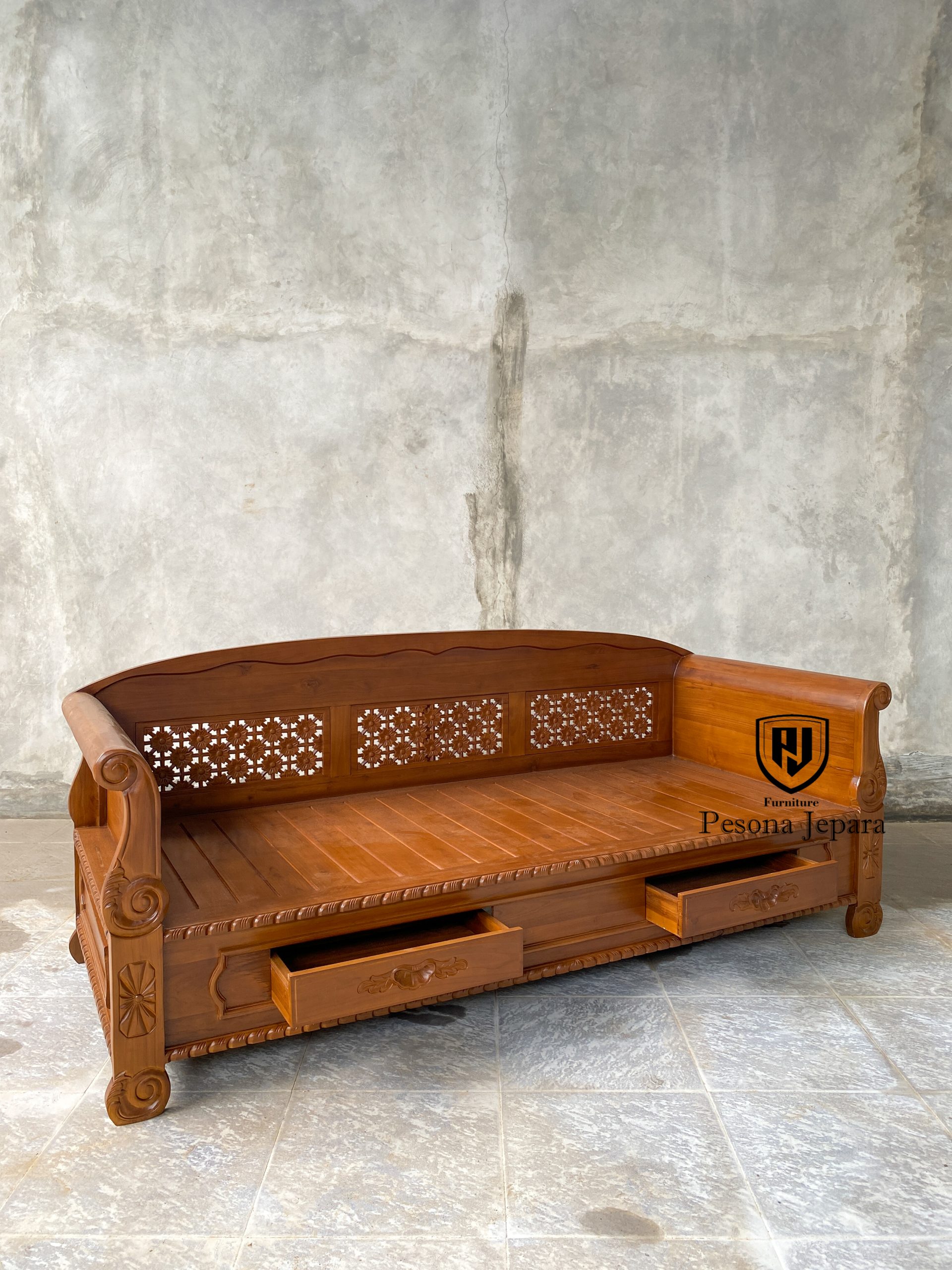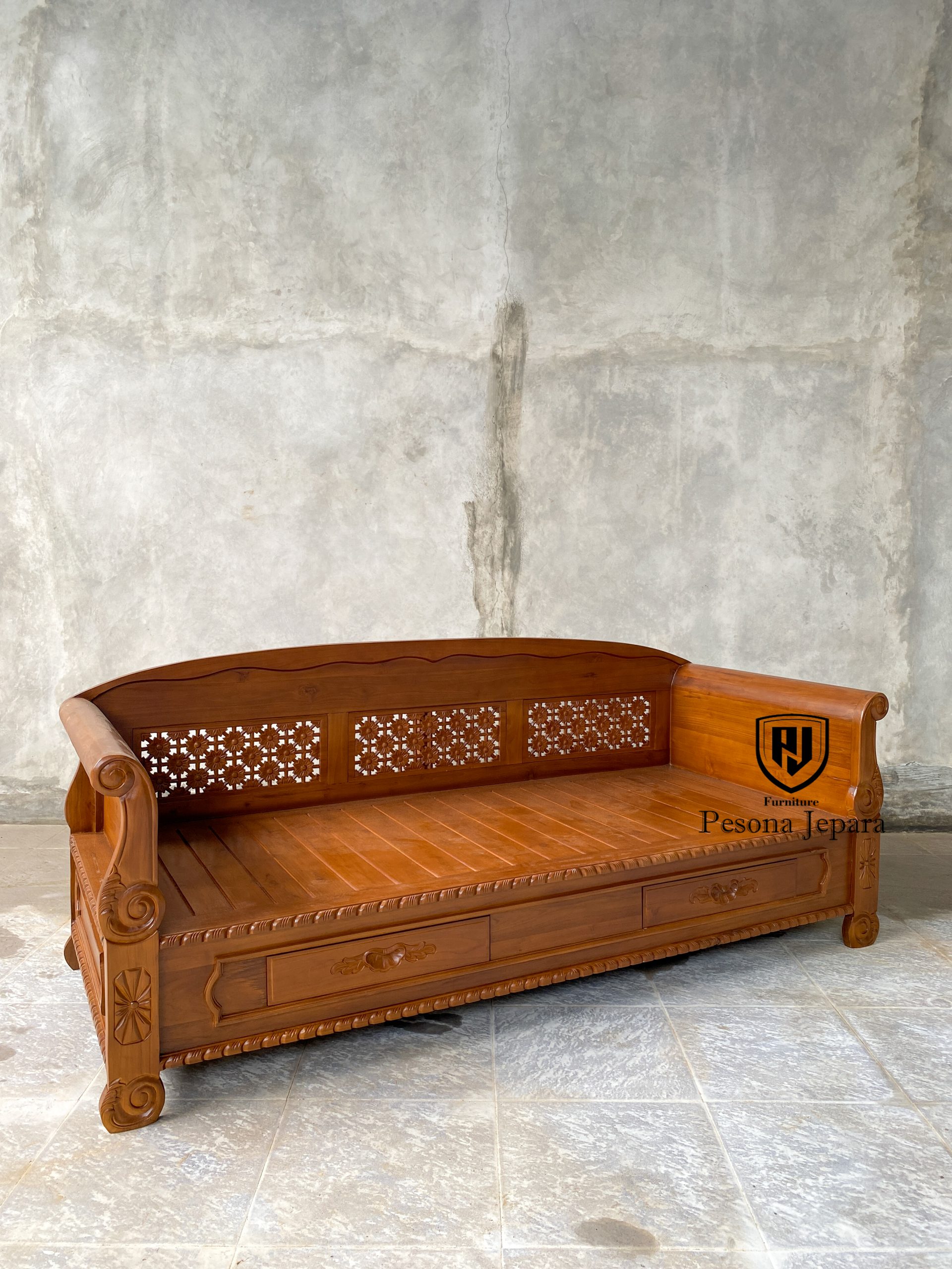 Bangku kepang model baru, bale bale kepang minimalis kayu jati