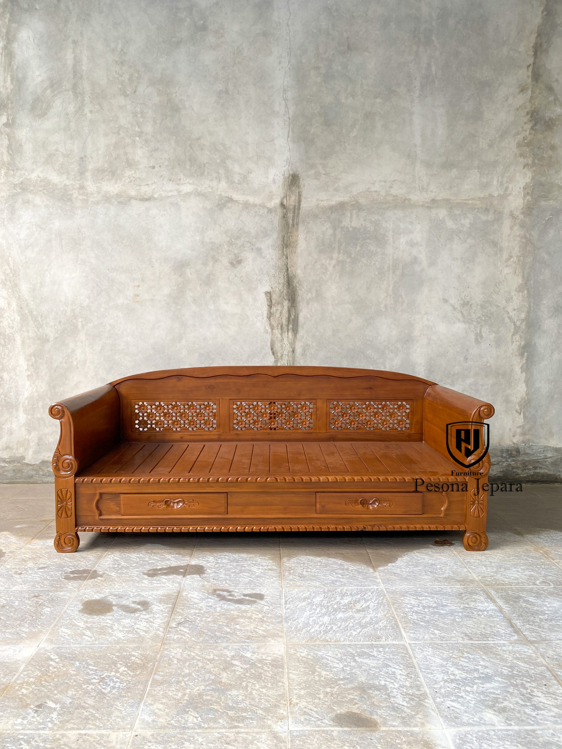 Siapa lagi yang ingin memiliki bale bale kayu jati rahwana ini? Tepat sekali jika Anda memilih salah satu mebel terbaik sepanjang masa ini untuk di tempatkan dalam rumah Anda. Bangku bale bale ini terbuat dari material kayu jati pilihan dengan desain khas ukiran relief jepara. Bangku bale bale ukir rahwana ini mempunyai sandaran lengkung dengan kaki berbentuk chipendale atau crawl ball. Dapatkan sekarang juga bangku bale ukir rahwana hanya di Jepara nale bale bagong kepang.
