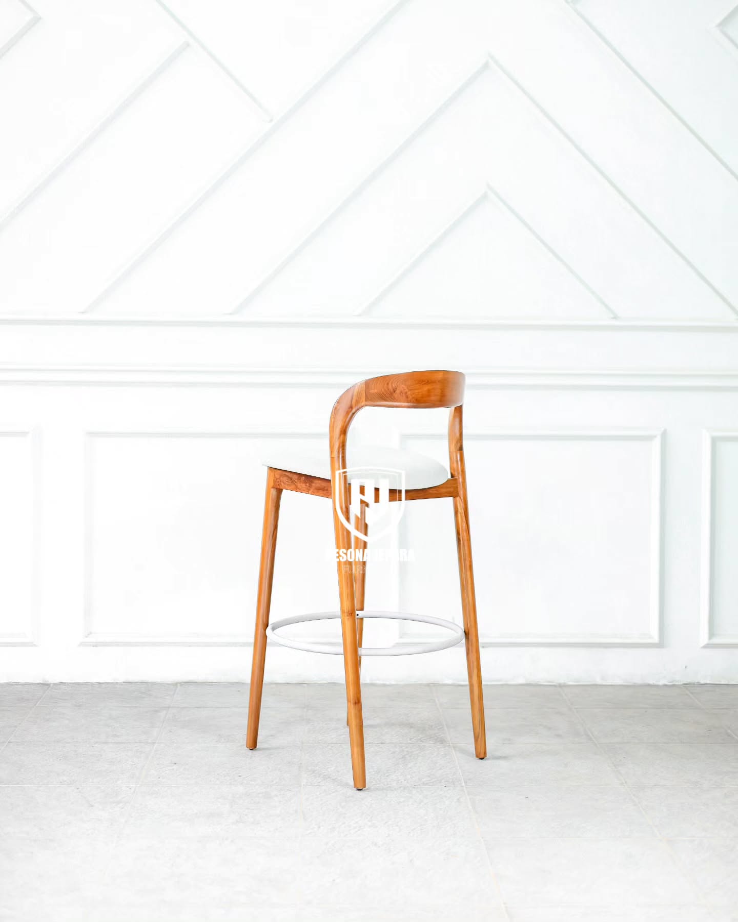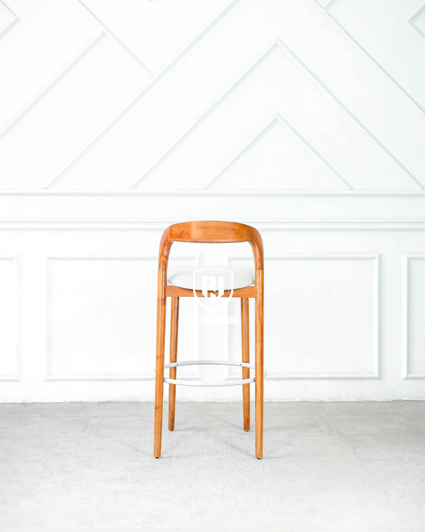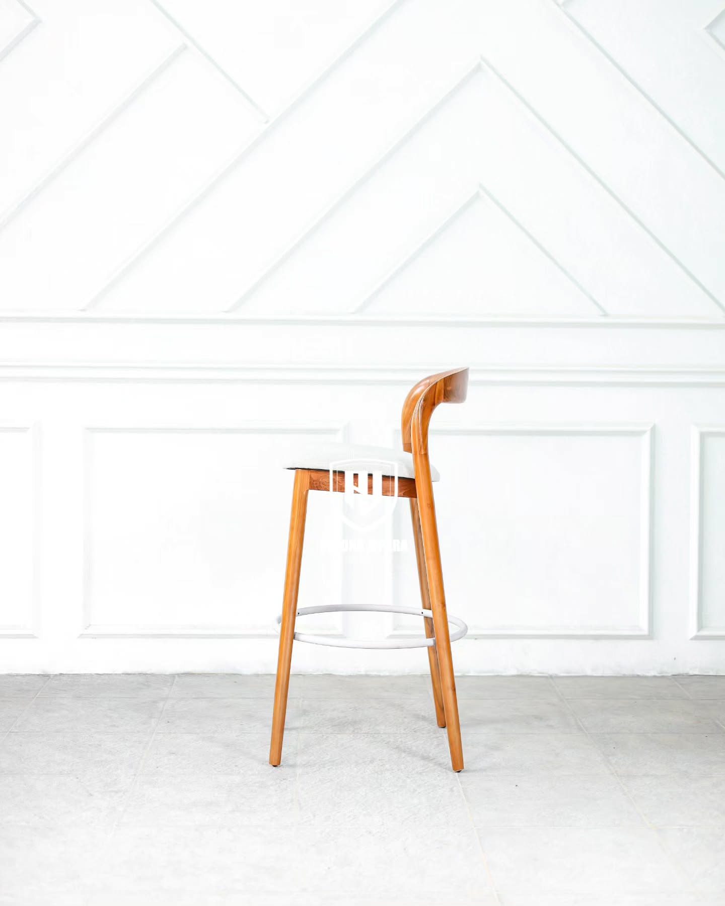 Desain kaki kursi dibuat tinggi dan ramping, menjadikannya sempurna untuk meja bar, kitchen island, atau kafe bergaya rustic-modern. Dudukannya dibuat sedikit melengkung mengikuti bentuk tubuh, memberikan kenyamanan ekstra tanpa mengorbankan gaya.