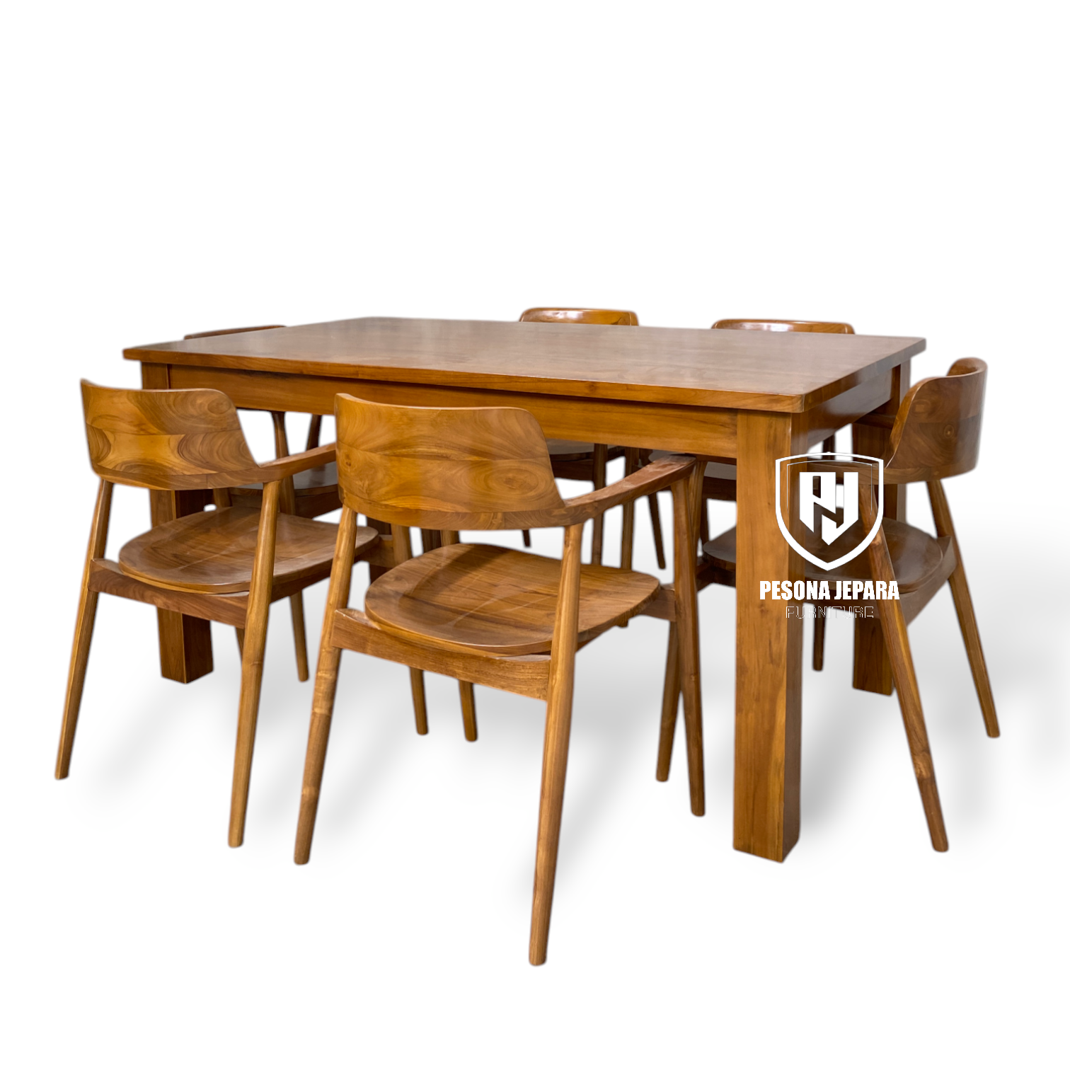 Set Kursi Makan Hiroshima 6 Kursi dari Pesona Jepara adalah wujud sempurna dari keindahan desain minimalis yang terinspirasi dari gaya Jepang klasik. Dengan detail garis melengkung yang halus dan tampilan natural kayu jati, set meja makan ini menciptakan suasana hangat dan elegan di ruang makan Anda.