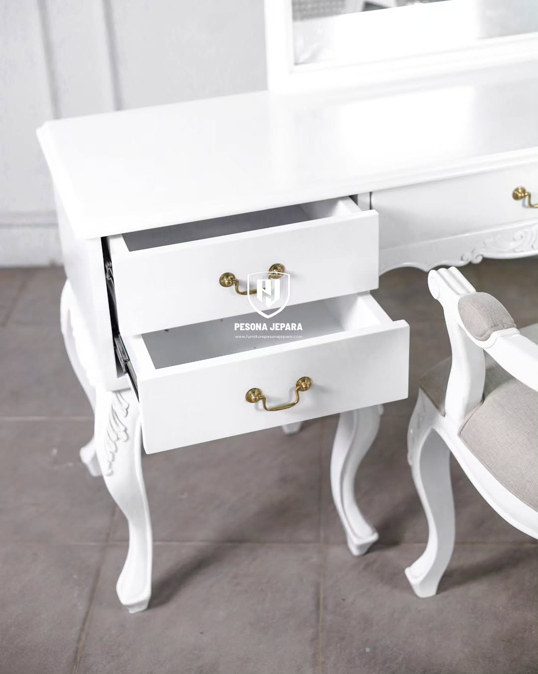 Setiap ukiran dan lekukan dibuat dengan presisi, menghasilkan karya seni furnitur yang bukan hanya indah, tetapi juga nyaman digunakan dalam rutinitas kecantikan harian.